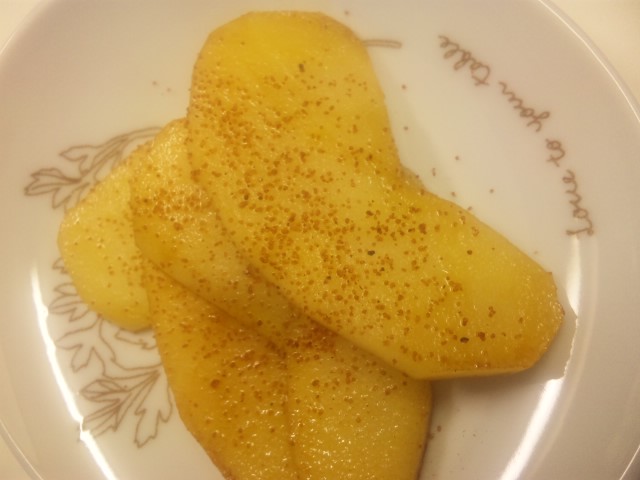 今日のおやつは焼きりんごにしました。