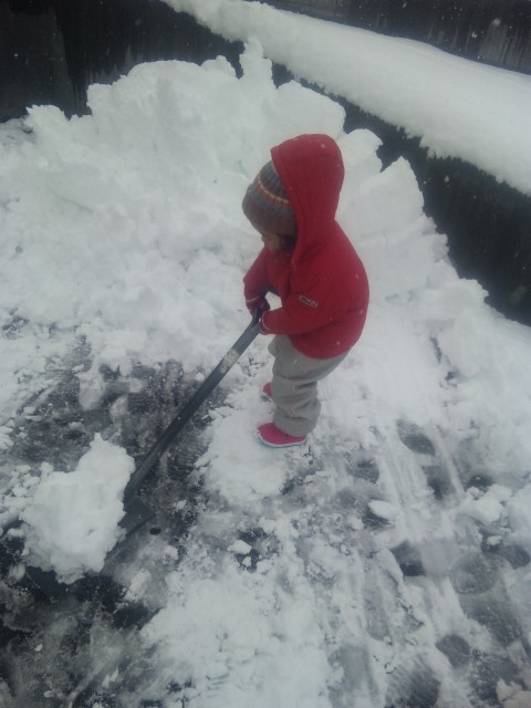 次女も雪かき→